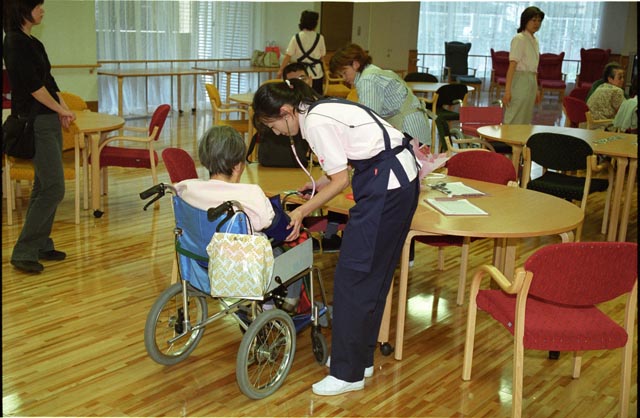 お年寄りの血圧を計るヘルパー