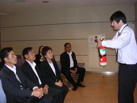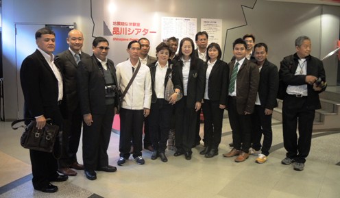 これは、タイ王国大使館より、首都バンコクのプラカノーン区区長を団長とする、議員・学校長・行政職員等40名の行政視察団の来日にあたり、品川区で防災体験をしたいとの依頼を受け、実施されたものです。
