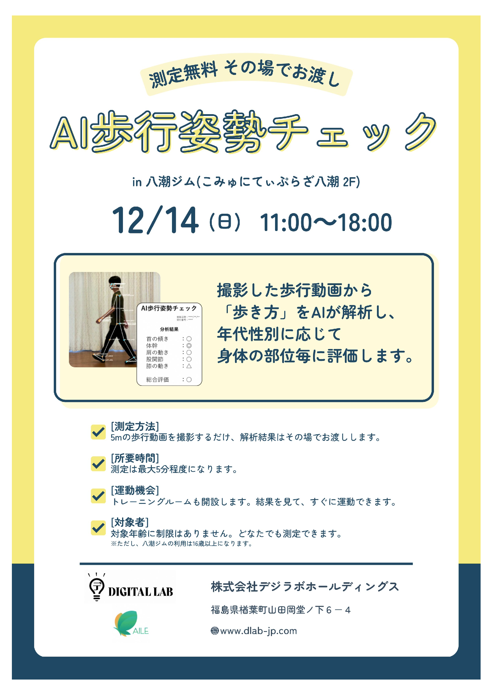 詳しい内容は下記実施概要、AI歩行姿勢チェックチラシ(PDF : 550KB)よりご覧ください。