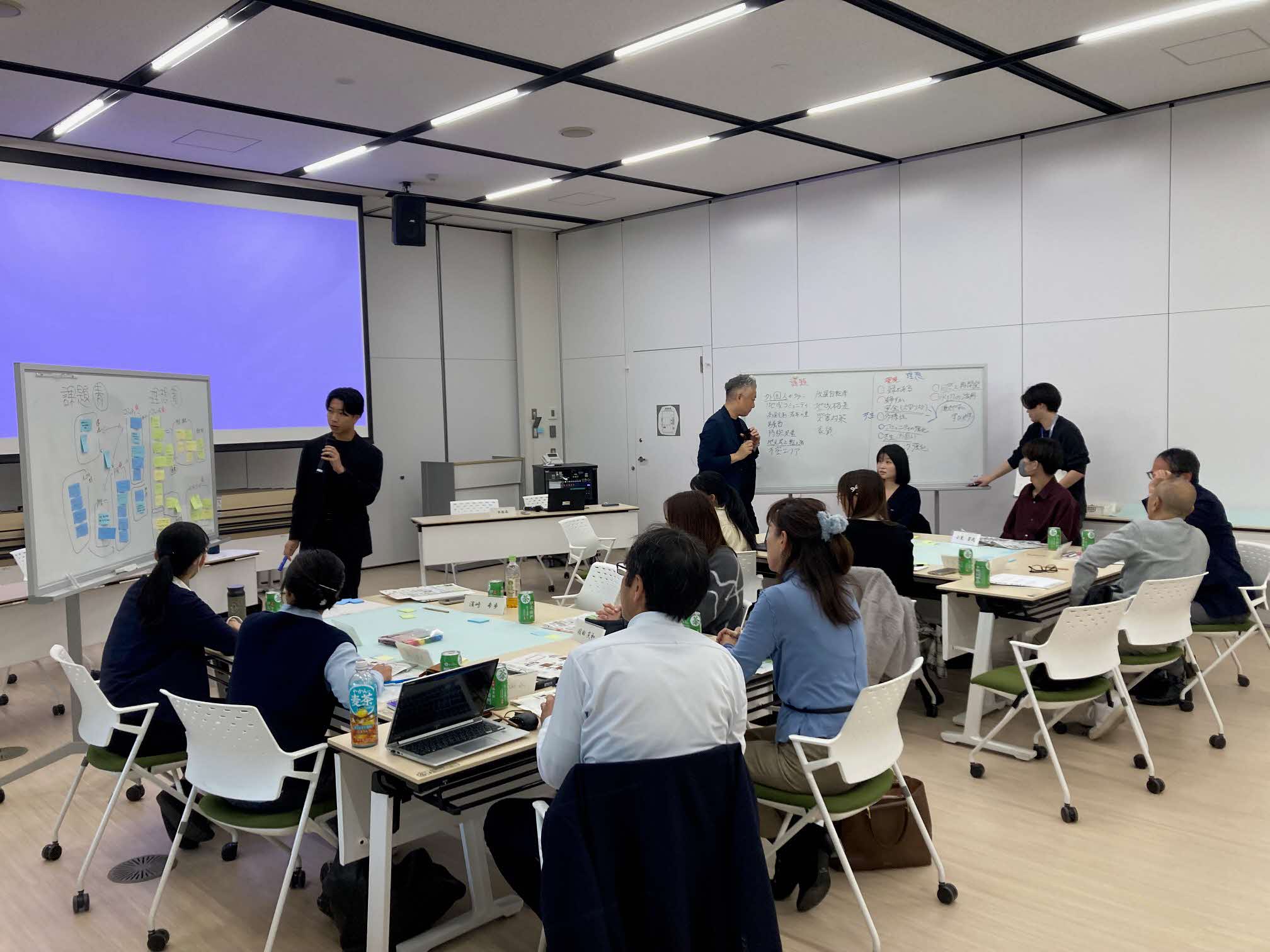 事前課題で検討した「品川区の課題・理想の姿」について2つのグループに分かれて共有しました。