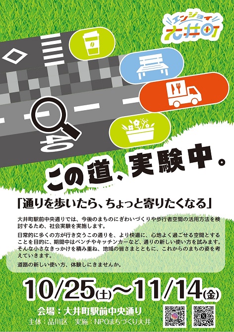 当日の実施状況等については社会実験「エンジョイ大井町~この道、実験中。~」のSNSアカウントをご確認ください。