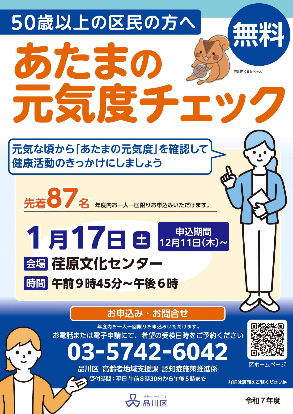 区内在住の50歳以上の方を対象に、もの忘れの訴えのない時期から、自身のあたまの元気度を確認できる機会を提供します。