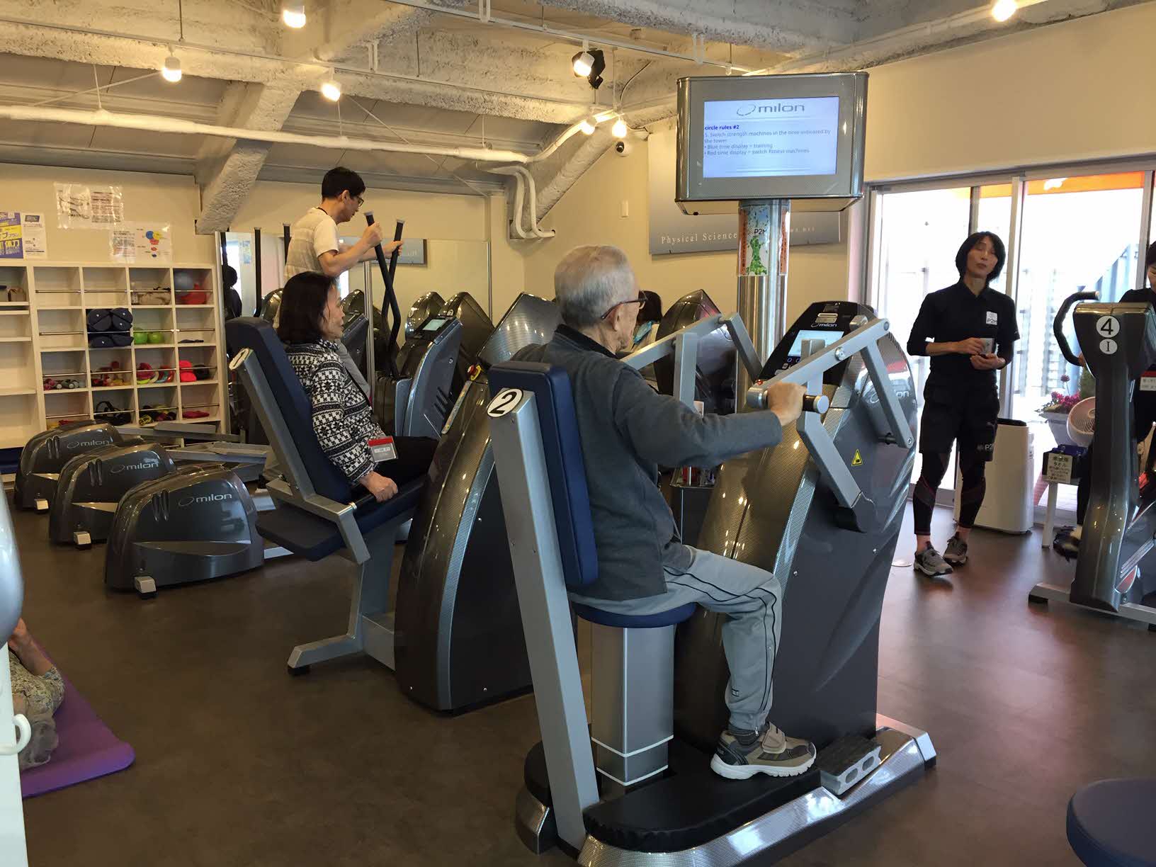 民間フィットネスジム等で、筋力や歩行姿勢などを専用機器で測定し、”見える化”して取り組む運動です。週1回 6カ月(全24回)1回2時間程度