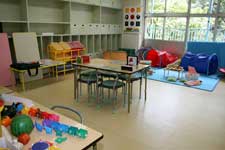 ここの歴史は古く、昭和33年に都が設置、昭和55年に区に移管されてから25年以上にわたって、知的障害児の早期療育に取り組み、着実な発達を促し、成長を支える役割を担ってきました。園庭や教室には、いつも元気な子どもたちの声が響いています。