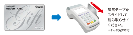 店頭でご利用の場合は、クレジットカードの決済端末にスライドし決済してください(ICチップは付いていません)。