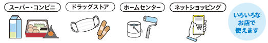 - ネットショップや一部店舗では、ポイントと組合わせて利用できる場合があります。