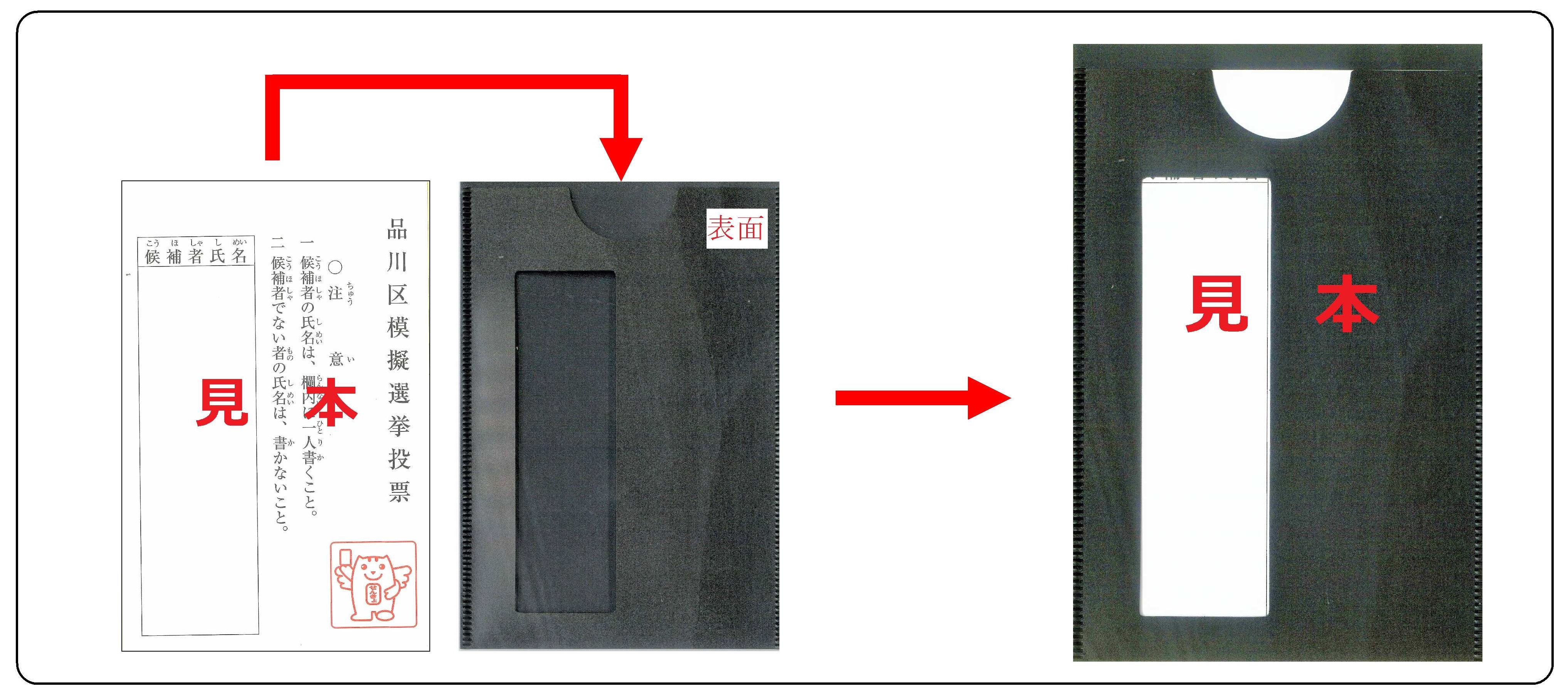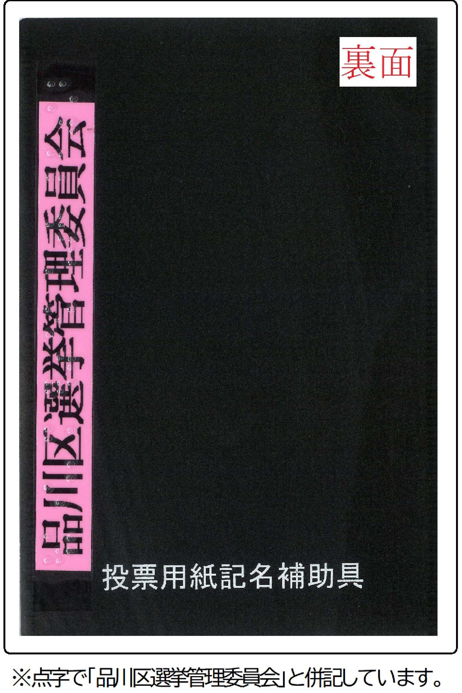 投票用紙記入補助具は記入の枠が切り抜かれており、手の感覚で記入する位置が分かる仕組みになっています。