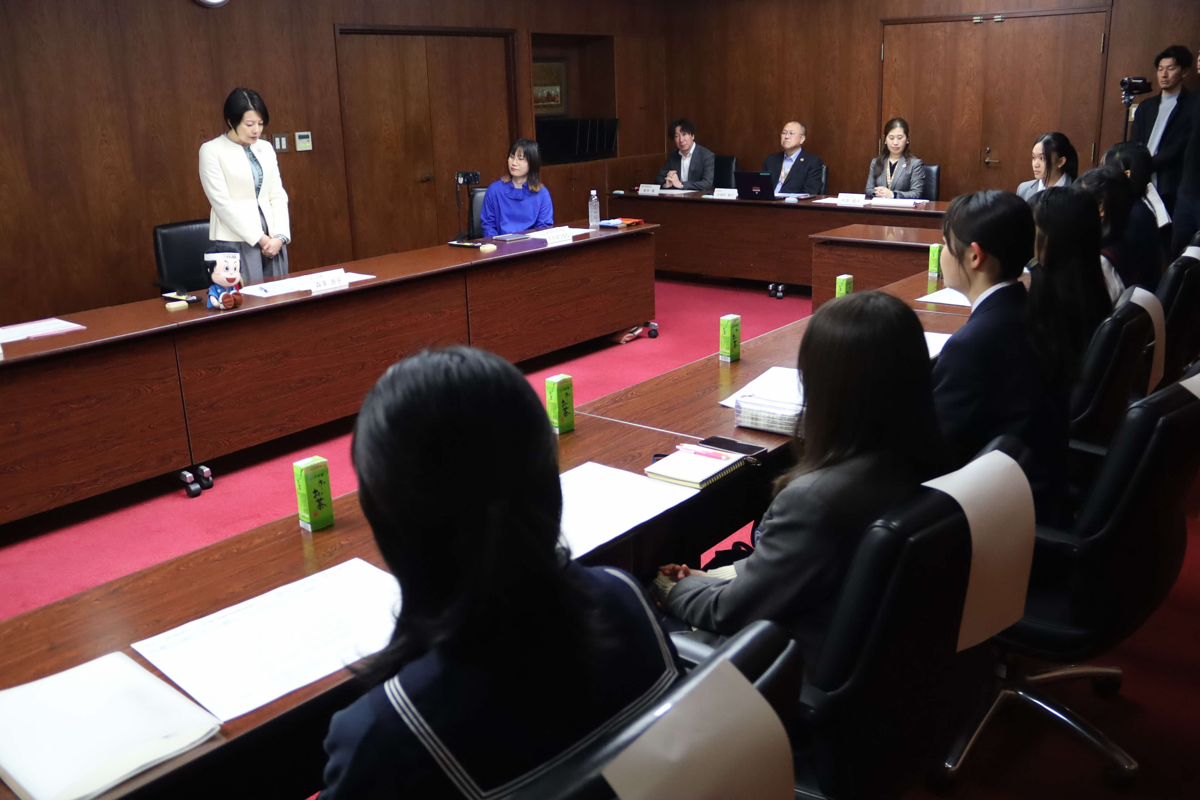 約3か月間に渡り、調査・検討し練り上げた内容について、森澤区長にプレゼンテーションを実施し、政策提言しました。区長への政策提言(プレゼンテーション)の様子(別ウィンドウ表示)