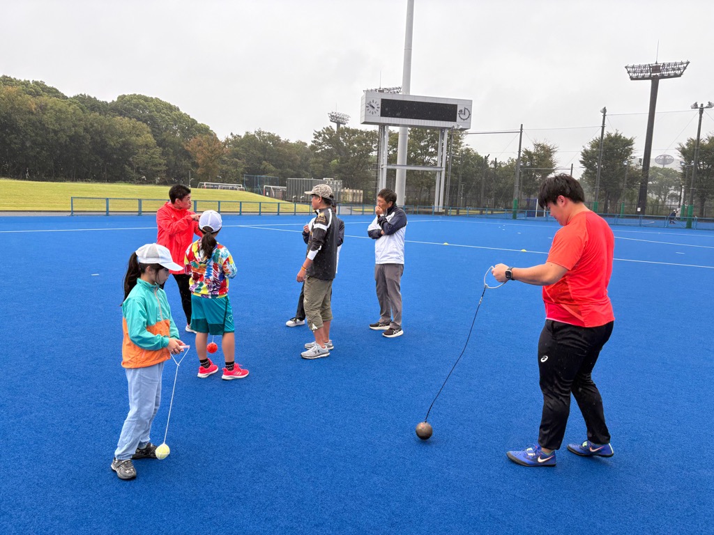 東京2025デフリンピック出場選手や女子ホッケー日本代表選手ら10人以上の講師から、ホッケー、デフサッカー、デフラグビー、デフ陸上(かけっこ、ハンマー投げ)の4競技を直接レクチャーしてもらい、参加者は楽しみながら競技を体験することができました。