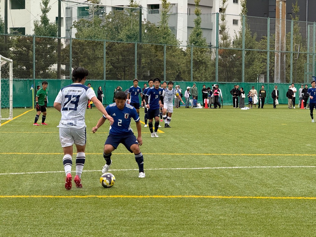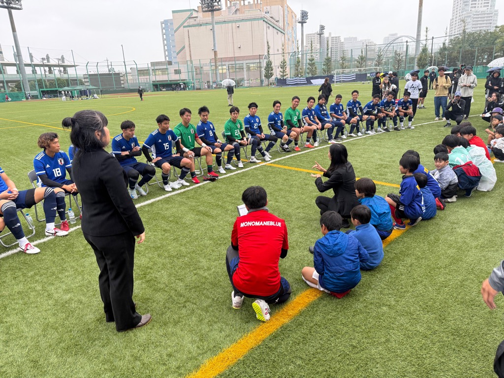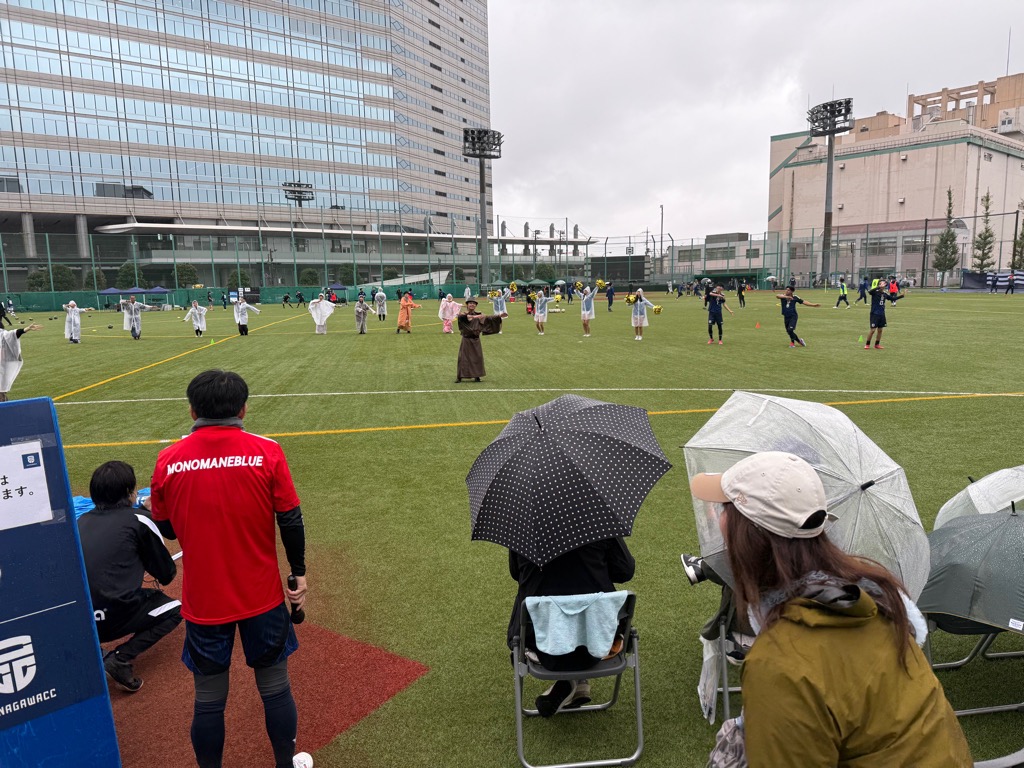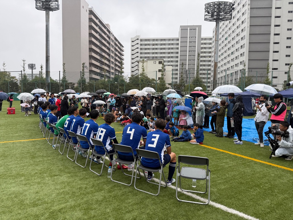 令和7年10月11日(土)に、デフサッカー日本代表と社会人サッカーチーム 品川CCのエキシビションマッチを天王洲公園サッカー場で開催しました。あいにくの雨模様にも関わらず、観客席が埋まるほどの観客にご来場いただき、熱く盛り上がり、日本代表が4-2で勝利しました。
