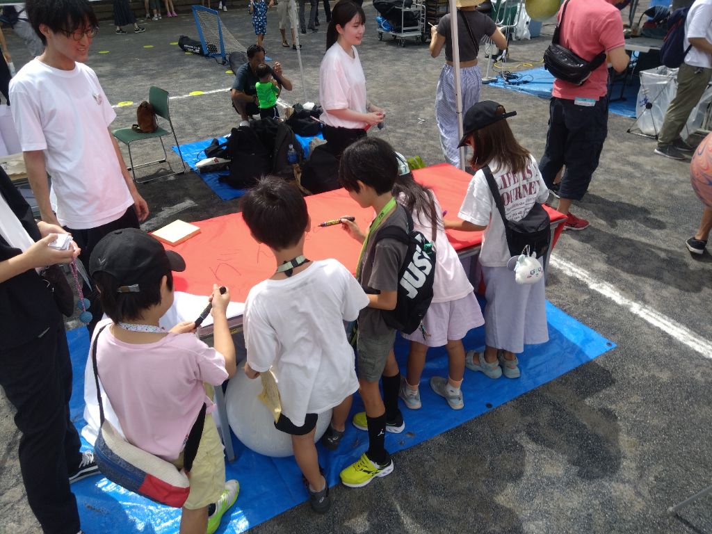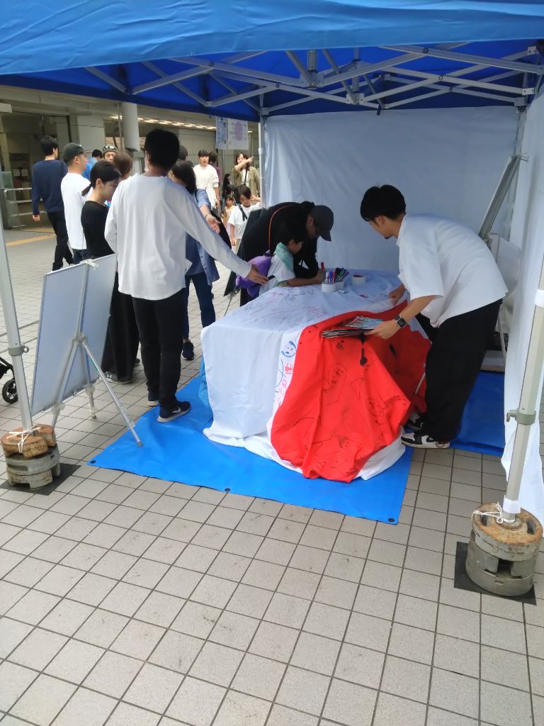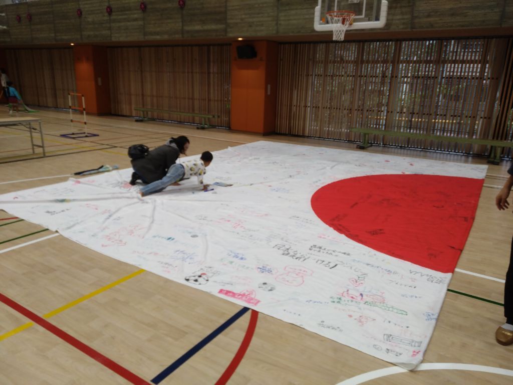 来場者の方々にデフハンマーの応援フラッグ(日本国旗)へ応援メッセージを書いていただきました。