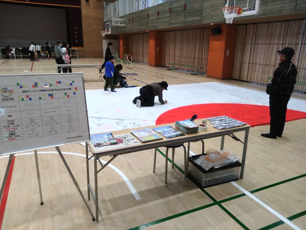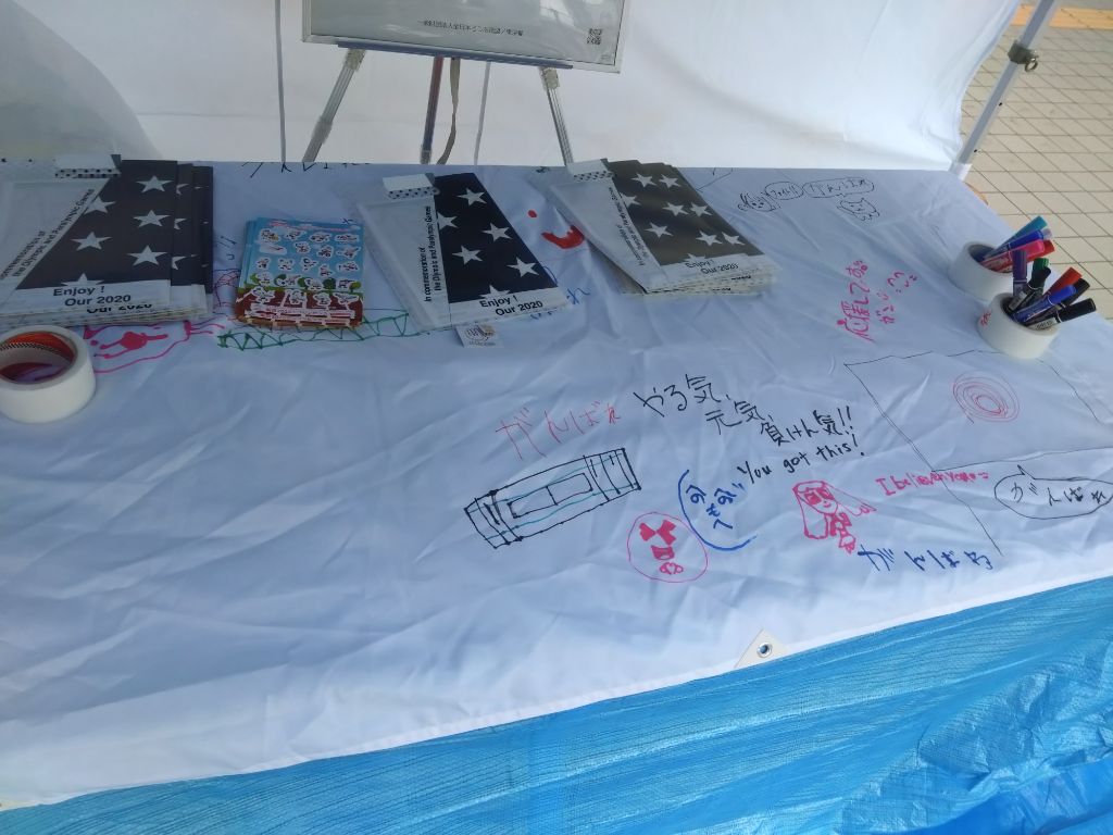 来場者へ向けた、パネル展示やチラシ配布のほか、デフサッカーとデフハンマーの応援フラッグ(日本国旗)に応援メッセージを書いていただきました。