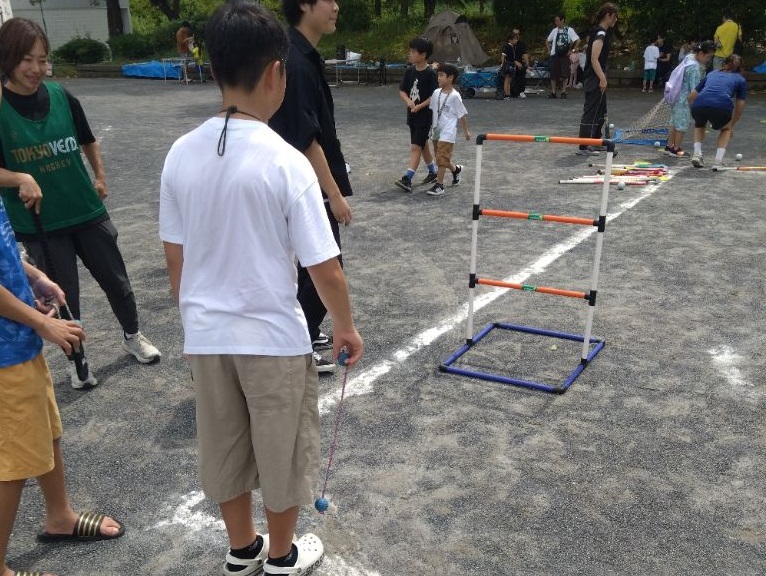令和7年9月27日(土)にしながわ中央公園で開催された「インクルーシブスポーツチャレンジデー」にて、デフリンピック啓発ブースを出店しました。ブース内ではハンマー投げで実際に使われる本物のハンマーを展示し、来場いただいた方に重いハンマーを持ち上げてもらい、選手のすごさを実感してもらいました。また、柔らかいハンマーを投げる体験スペースも用意し、投げる動きも体験してもらいました。