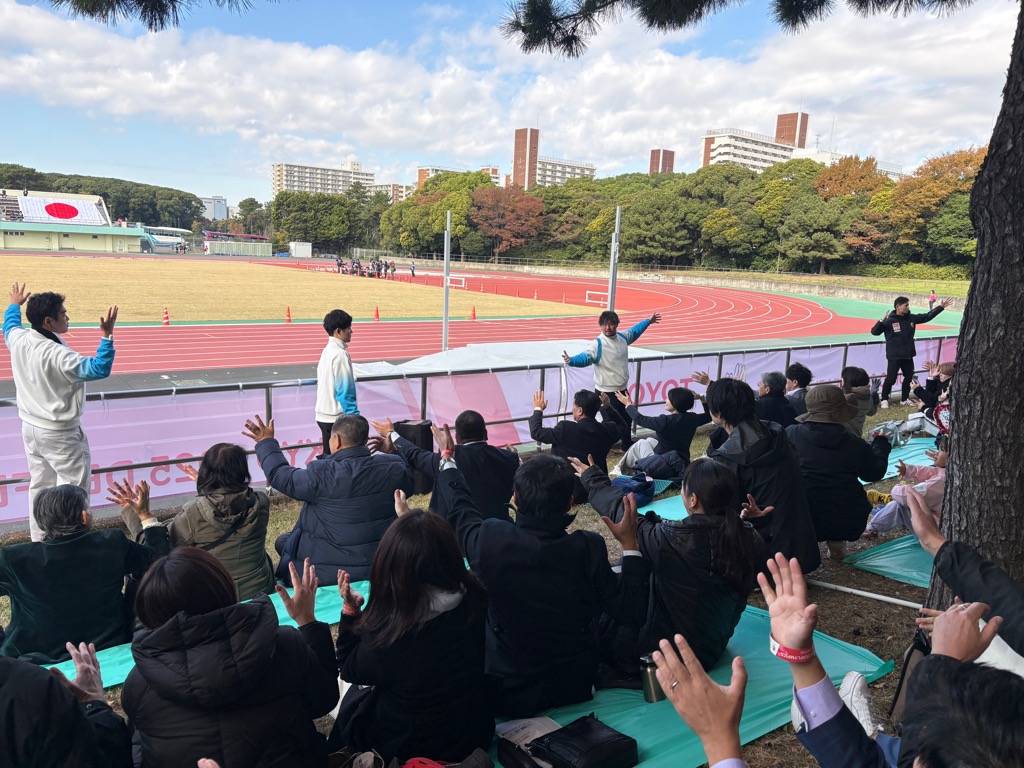 令和7年11月20日(木)に、大井ふ頭中央海浜公園陸上競技場にて開催されたハンマー投げの観戦ツアーを実施しました。約70名の区民の方にご応募いただき、会場では一体となってサインエールで選手を応援しました。