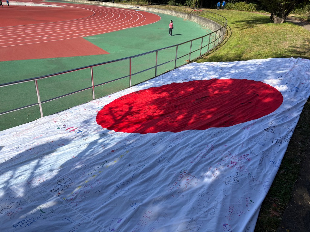 令和7年11月14日(金)から25日(火)に開催された、男子サッカー・女子サッカーの試合日に、これまで様々なイベントで多くの方に応援メッセージをいただいた応援フラッグ(日本国旗)を掲揚しました。