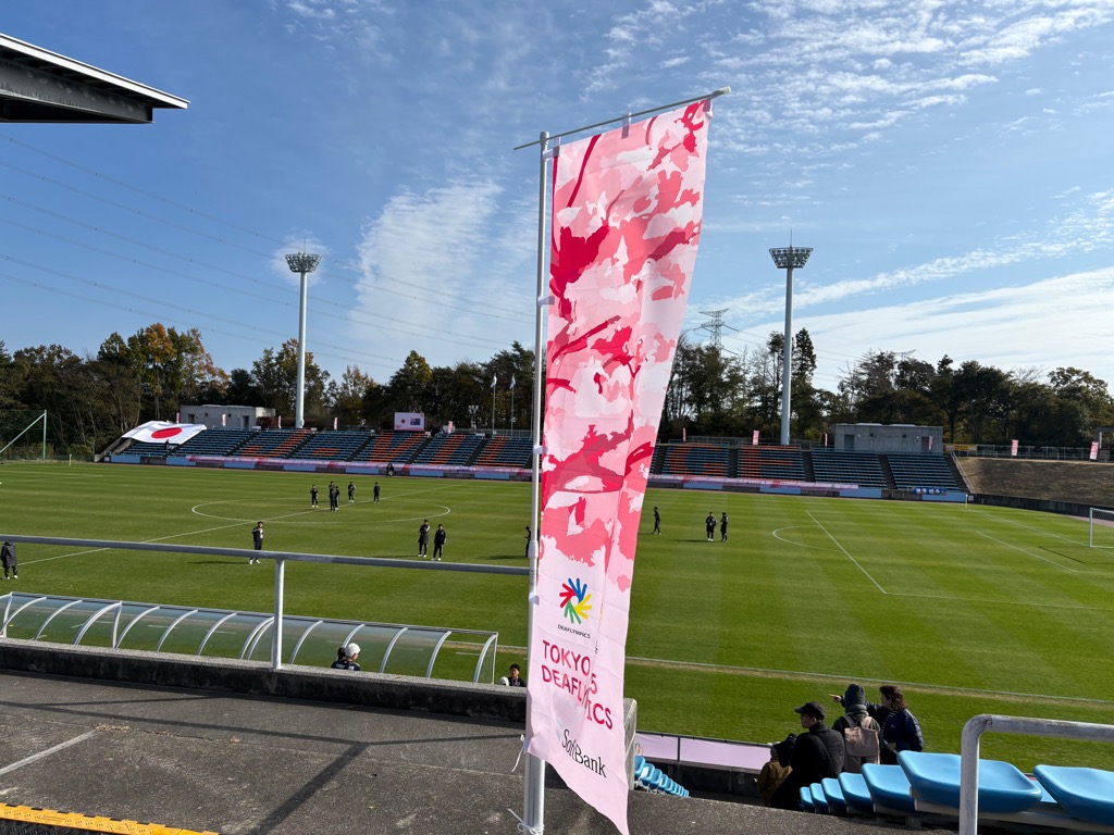 東京2025デフリンピックサッカー開催日に応援フラッグ(日本国旗)を掲揚
