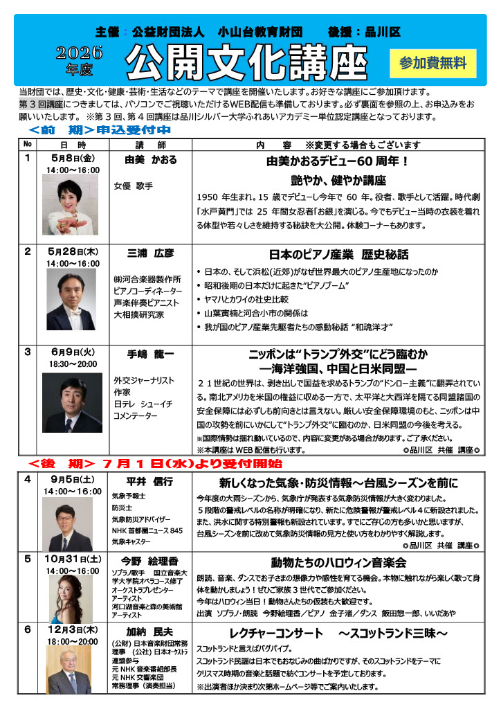 令和8年度小山台教育財団公開文化講座