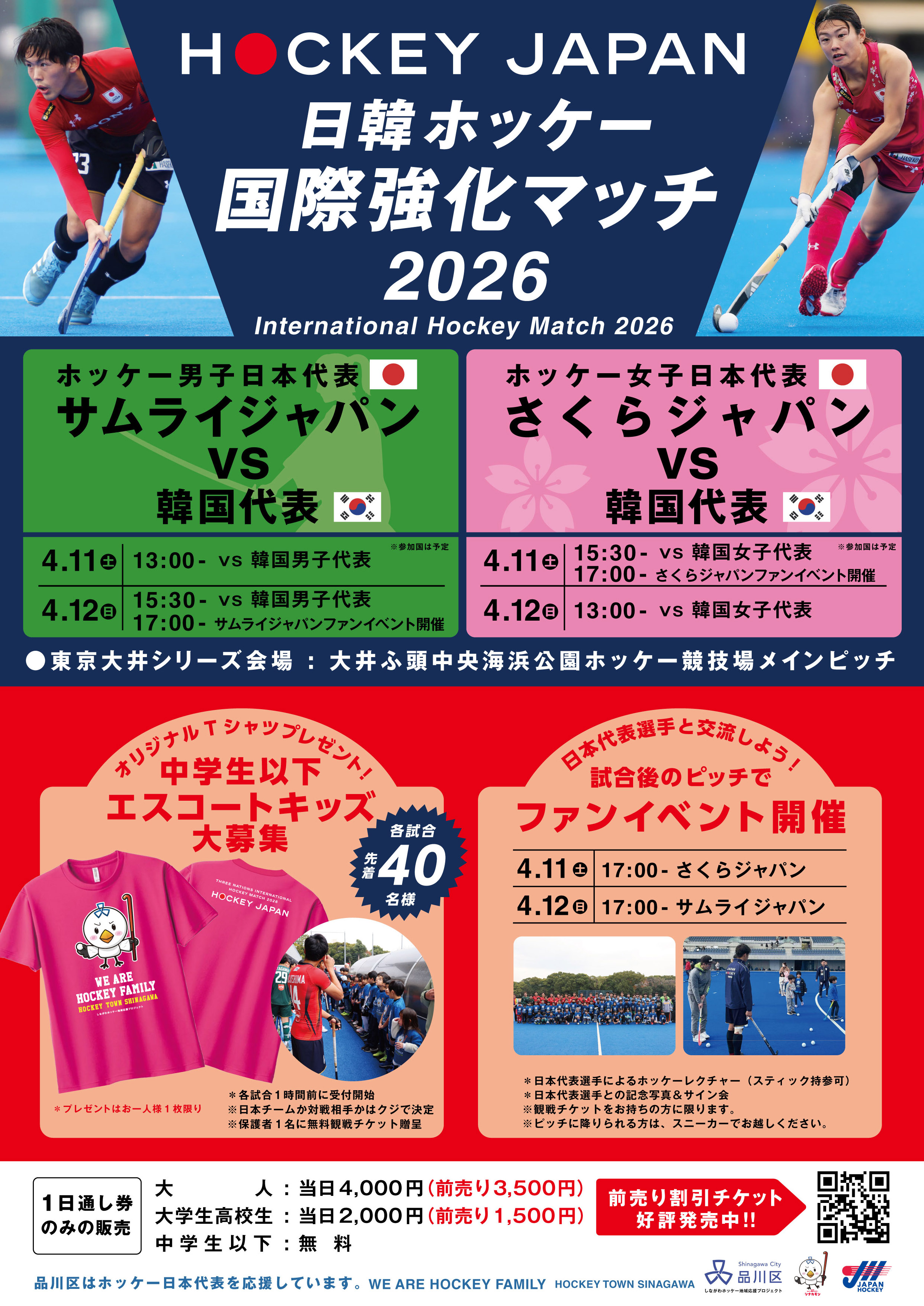【4月11日(土)・12日(日)】日韓ホッケー国際強化マッチ2026 観戦ご招待