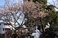 戸越公園の薬医門(北門)前で、寒くなるこの季節に花を開かせるヒマラヤザクラが見ごろを迎え、訪れる人の目を楽しませています。