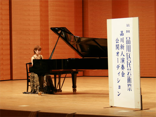 品川区が主催する第1回品川区民芸術祭の一環として、 7月3日(土)きゅりあん(品川区東大井5-18-1)で、ピアノ、管弦楽器、声楽部門の公開新人オーディションが行われました。これは、豊かな才能を持つ新人で、品川区の芸術振興に寄与していただく人材を発掘することを目的に実施しました。