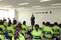 濱野区長から「ふだんあまり見ない街の様子を、ぜひじっくり見て欲しい。そしてその感想を、友達や家族に話して聞かせてあげてください。」と語りかけられると、子どもたちは真剣な表情で聞き入っていました。