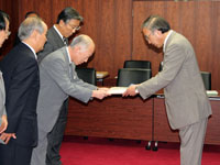 10月6日、平成22年度前期一般監査および21年度決算審査等の結果について報告書が三浦代表監査委員より濱野区長に渡され、それぞれの監査結果について説明がありました。