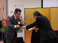 贈呈式には、前の公務を終えた濱野区長が駆けつけ、感謝の心を込めて、受賞したみなさんに感謝状と記念品を贈呈しました。