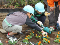 11月25日(木)、東品川保育園の5歳児21名が、区立東品川海上公園(東品川3‐9‐21)の花壇にチューリップの球根を植えつけました。
