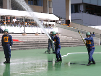 残暑の中、団員の皆さんは場内に響き渡る大きな声で、真剣に訓練に取り組んでいました。