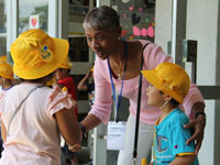 この日は、全校児童による外国人講師を歓迎するアトラクションが行なわれたあと、3校時目は日本の授業を見学し、4校時目、5校時目は外国人講師による英語、算数、理科、体育の科目で特別授業が実施されました。