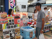 会場では人気のご当地グルメ・黒石市の「つゆ焼きそば」が販売されたほか、岩手県宮古市や宮城県石巻市を中心とした震災被災地の物産展なども出店。多くの買い物客が訪れました。