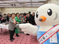 修了生からは、坂井道男さんが代表で「3年間を振り返って、たくさんの深い絆を持った仲間が品川にできました。シルバー大学での経験は、これからの人生で心の支えになるでしょう」とあいさつ。また、会場では、うるおい塾の成果発表も行われ、マジックやフラダンス、コーラスで式を盛り上げました。また、スポーツ祭東京2013マスコットキャラクターの「ゆりーと」がお祝いに駆けつけました。