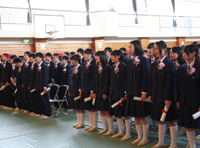 卒業生合唱では、卒業生が3年間の思い出を振り返り、涙を流しながら「旅立ちの日に」「仰げば尊し」を歌いました。