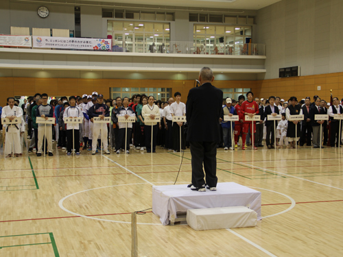 この日の開会式には、スポーツ協会に所属する24団体と品川区スポーツ推進委員の計約500人が参加。濱野健品川区長は「1年間で50種目の競技が繰り広げられますが、今年は54年ぶりに東京で国民体育大会が行われます。この総合体育館でも10月にハンドボールが行われ、デモンストレーションとしてのスポーツ行事であるグラウンド・ゴルフも、天王洲で予定されています。品川区をあげて、この国民体育大会も盛り上げていきます。区民スポーツ大会でも、皆さまそれぞれの練習の成果を出していただければと思います」と、会場に集まった皆さんを激励しました。
