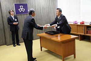 ヘルメットの寄贈に対して感謝状を贈呈
