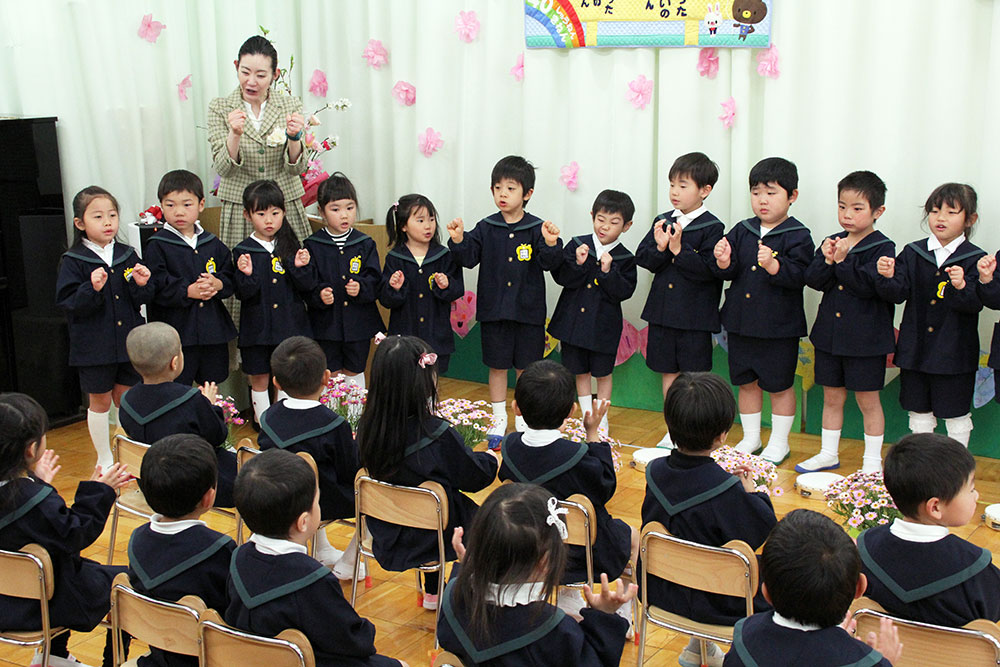 最後に全員で「あかるい えがおが いっぱいの みんなの いとうようちえん」と園歌を斉唱して、入園式の幕を閉じました。