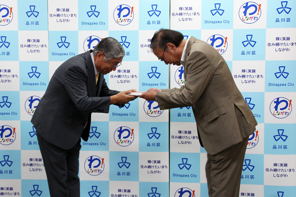 品川区は平成30年7月12日(木)、「細谷恵介くん基金」より1,000万円の寄附を受けました。