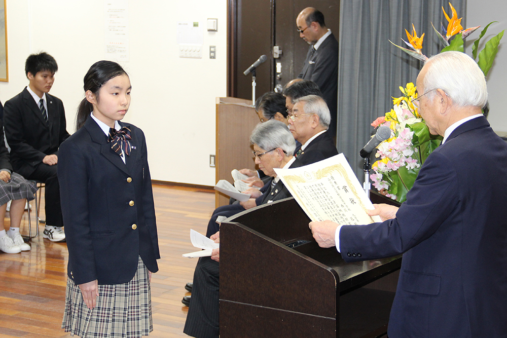 今年は、区内中学校16校から合計1,691作品の応募があったなかから、29人の生徒が表彰されました。また、作文募集協力校として、日野学園と荏原第六中学校に感謝状が贈呈されました。