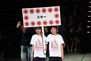 第23回オリンピック冬季競技大会(2018/平昌)日本代表選手団壮行会で城南小学校児童がプラカードを担当