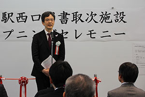 オープニングセレモニーでは本城教育次長が、「本施設は乳幼児に特化した本や設備を整えていて、子どもたちに楽しめる場所になってほしいという思いがこめられています。“おおさきこども図書室”という愛称とともに、地域に愛される施設になるように尽力していきます」とあいさつしました。