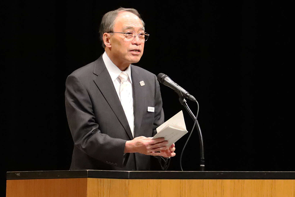 式典で、濱野区長は、新成人に向け「ご成人の皆さまおめでとうございます。ここまでご家族などの支えがあり成長してこられたと思います。この機会に感謝を伝え、支えられる人から支える人へさらに成長してほしいと思います」と励ましの言葉を贈りました。