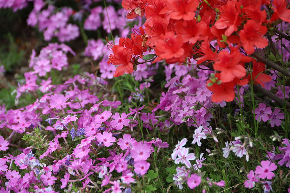 区内の公園などで芝桜が見ごろを迎え、ひらさん広場(平塚3-9-1)では、ピンク色や白色などの花が公園を訪れた方の目を楽しませています。