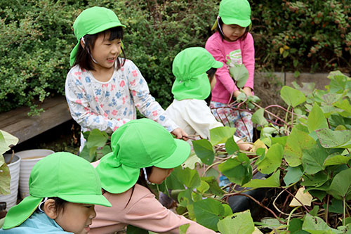 二葉保育園の園児が区役所屋上でサツマイモ掘り