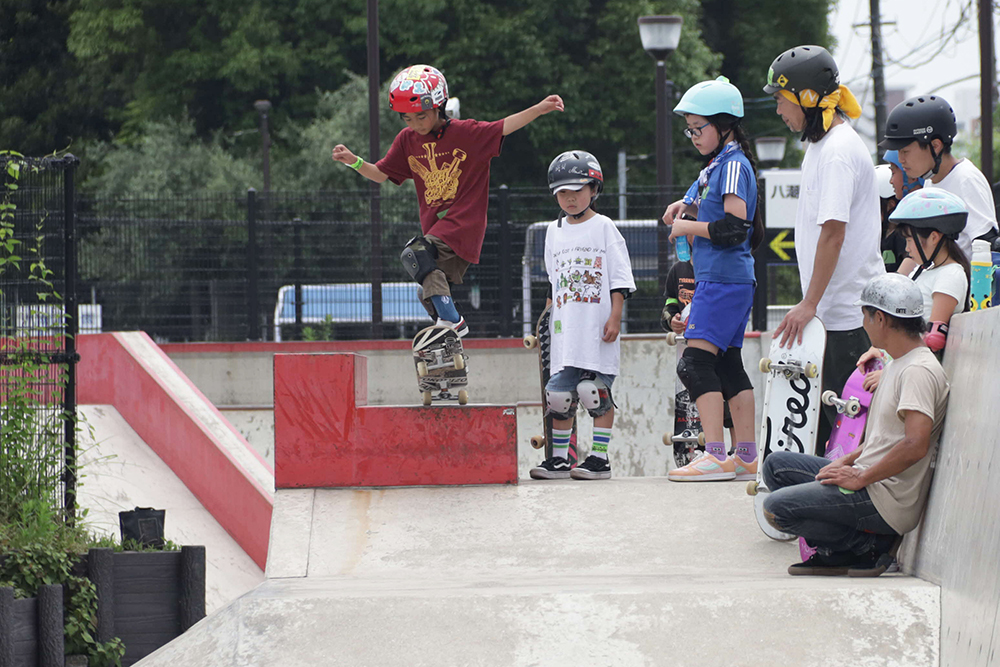 参加者は「講師が優しく教えてくれたので、スケートボードが好きになりました。これからも続けていきたいです」「細かくアドバイスしてくれたので、これまでできなかった技がもう少しできるようになりました」などとうれしそうに感想を話していました。