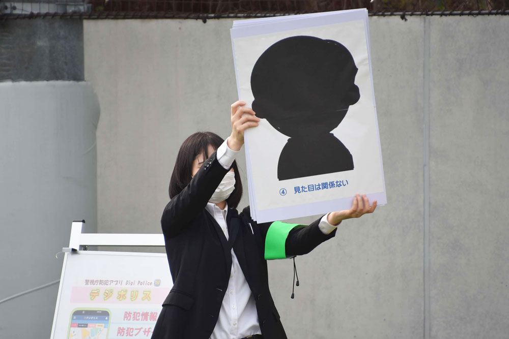 今回の講演は、全国地域安全運動期間で重点としている子どもと女性の犯罪被害防止を目的に実施。不妊治療を経て生まれた8歳になる子どもがおり、母親という視点でも話すことができることから大島さんが抜擢され、子どもたちのほか普段から防犯活動を行っているPTAや町会の方も参加し開催されました。