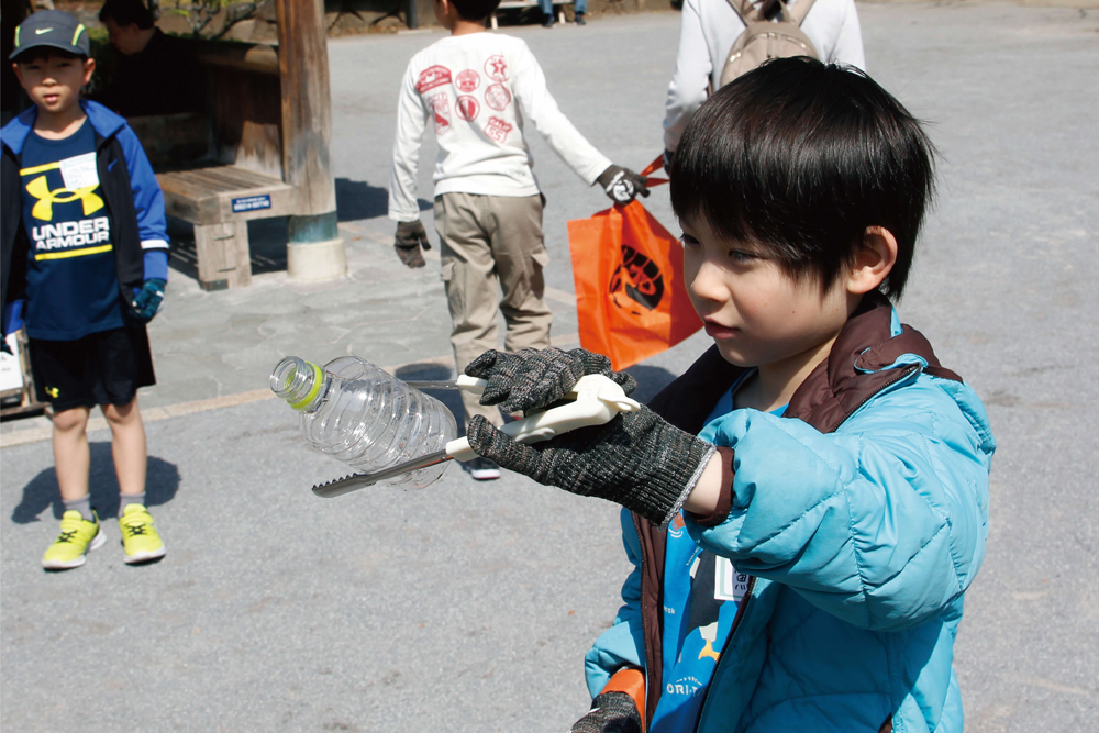 イベントはプロギングからスタート。室井さんからプロギングの説明を受けた後、みんなで戸越公園に向かい熱心にゴミを探しました。ゴミを見つけると、「ナイスピック!」と一声。楽しみながら燃える・燃えないゴミなどを色分けした袋に入れていきました。
