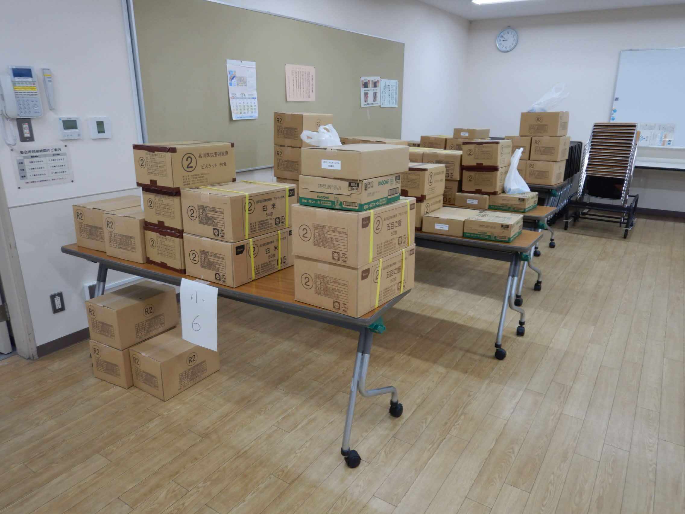 荏原第二地域センターを拠点とし、各町会へアルファ化米や水などの物資を配付、災害時の備えとしました。