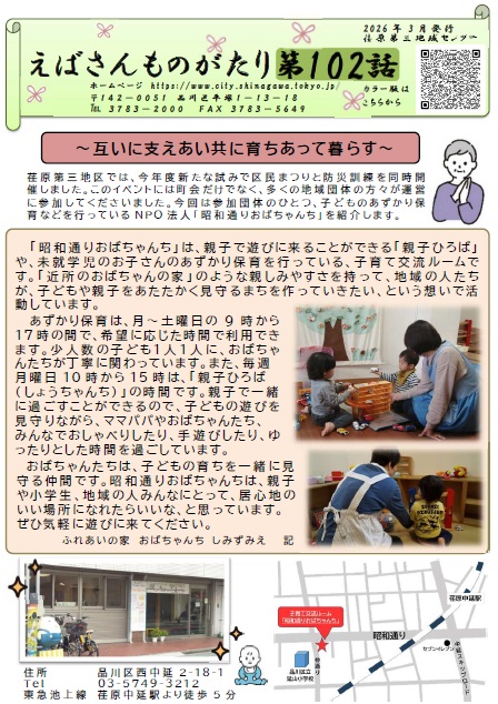 トップページ > 施設案内 > 区役所・地域センター > 地域センターからのお知らせ > 荏原第三地域センター > えばさんものがたり(荏原第三地域ニュース) > えばさんものがたり102号 2026年(令和8年)3月発行