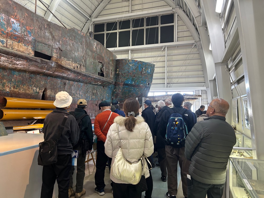 「海上保安資料館」では、海上保安庁の活動および海難事故に関する展示の見学を行いまいました。実物資料の展示を通じて海上における危機管理の重要性について理解を深めたほか、海上の安全確保に関する取組について理解を得ました。