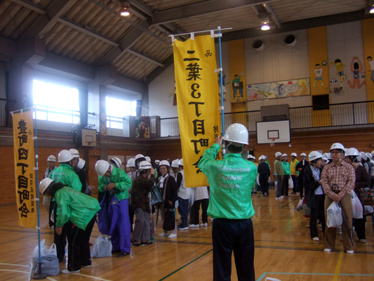 杜松小学校には、豊町4丁目、豊町5丁目、二葉中央、二葉3丁目が指定されていますが、今回は初めての4町会合同の訓練です。